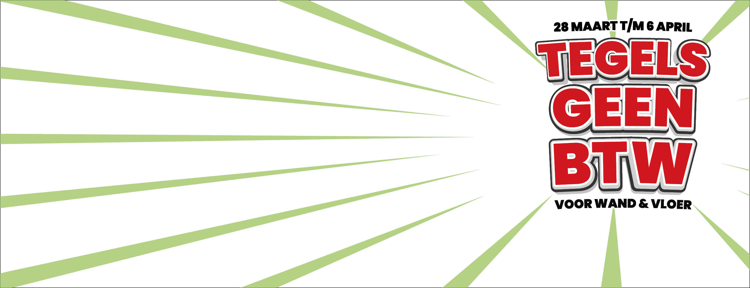Profiteer en sla uw slag van 28 maart t/m 6 april 2026 geen BTW op wand- en vloertegels. Onze experts staan klaar om u te adviseren bij het kiezen van de perfecte wand- en vloertegels die passen bij uw stijl en behoeften.